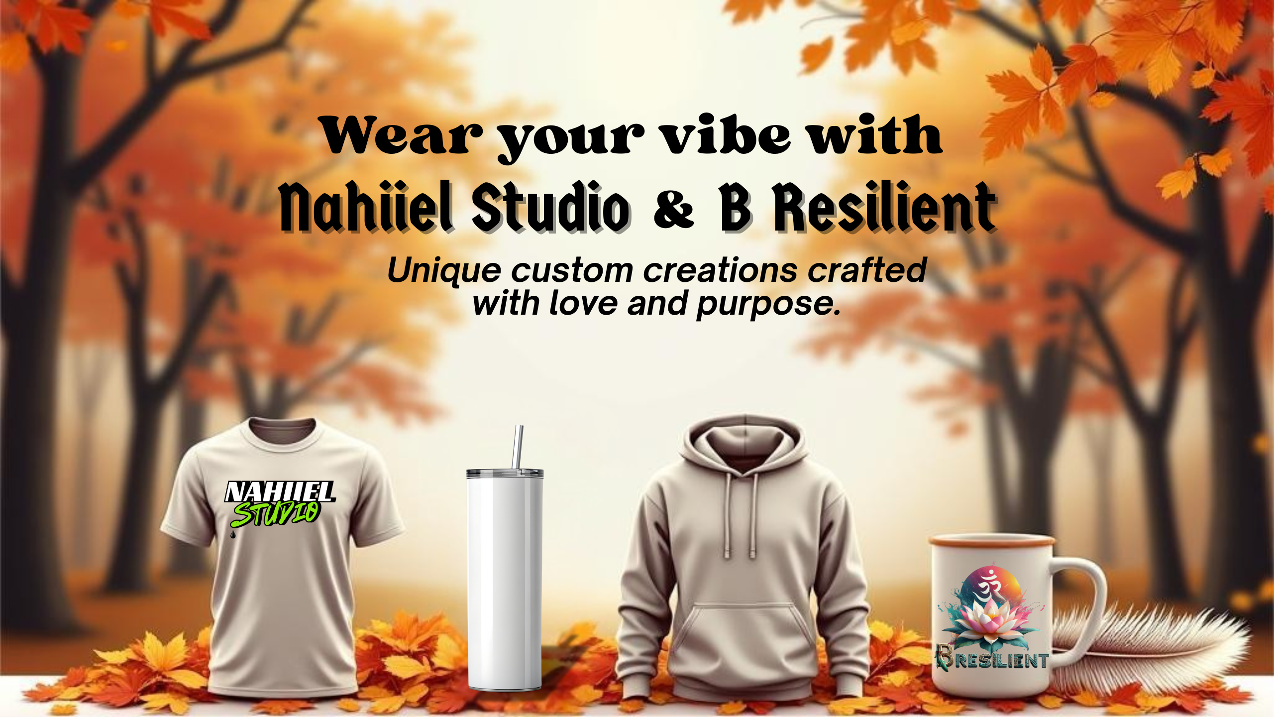 Nahiiel Studio and B Resilient are two brands, one soul — born from passion, creativity, and resilience. Each has its own purpose, yet together they form a journey of self-expression, empowerment, and spiritual growth.