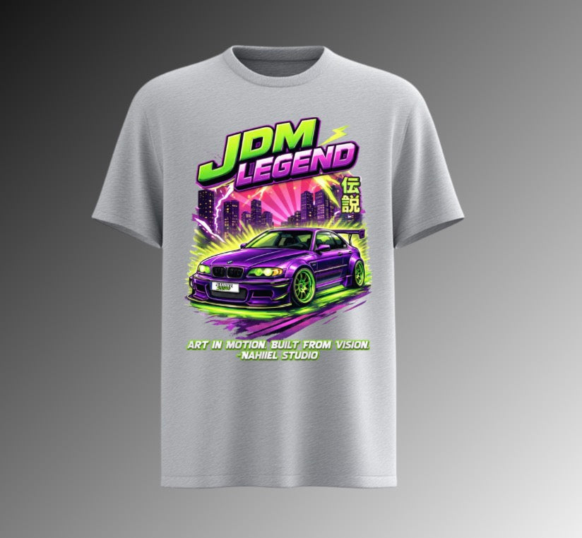 Nacida de la pasión por la velocidad, el arte y la cultura callejera. Esta camiseta JDM Legend combina diseño neon inspirado en las calles nocturnas, autos icónicos y el espíritu del car show lifestyle.